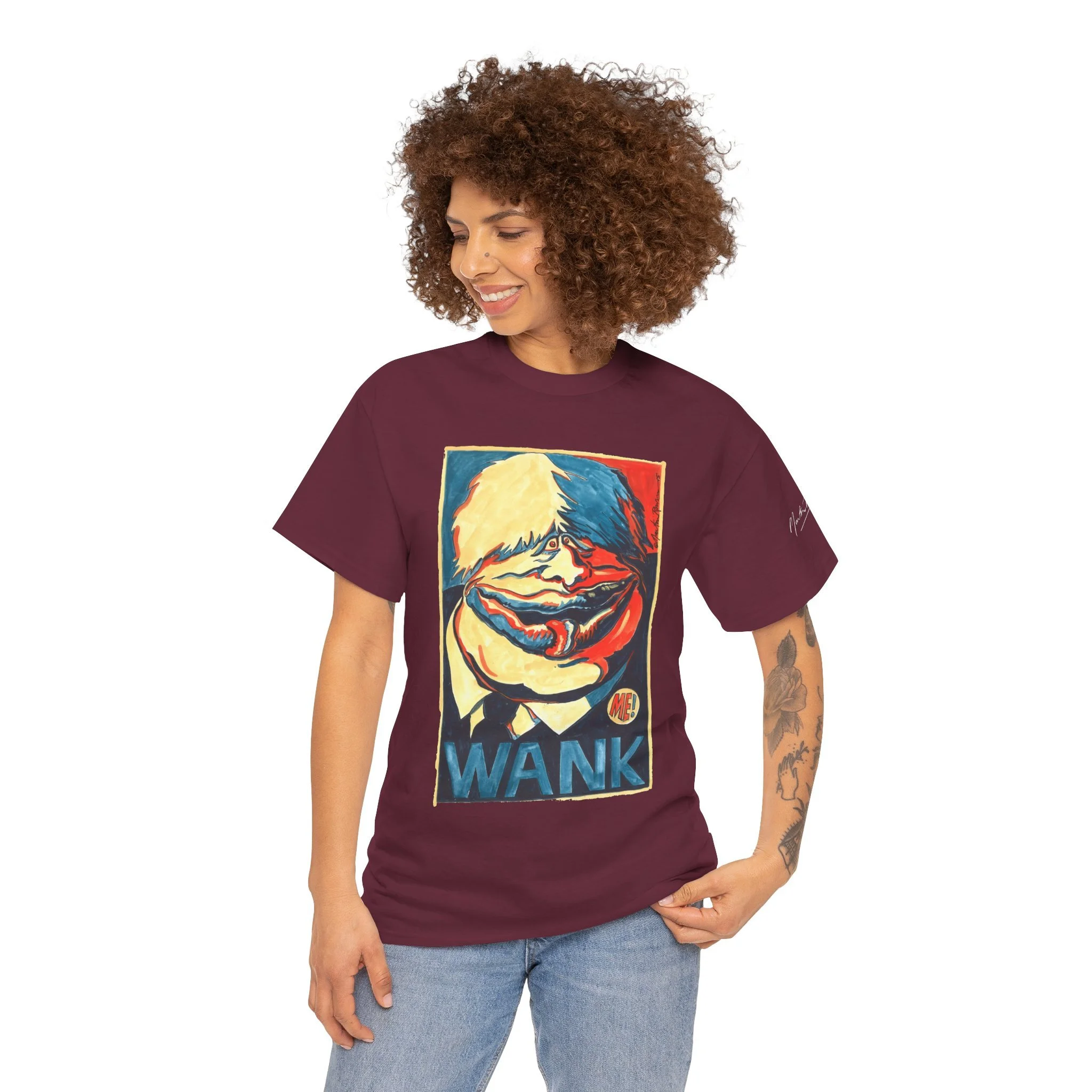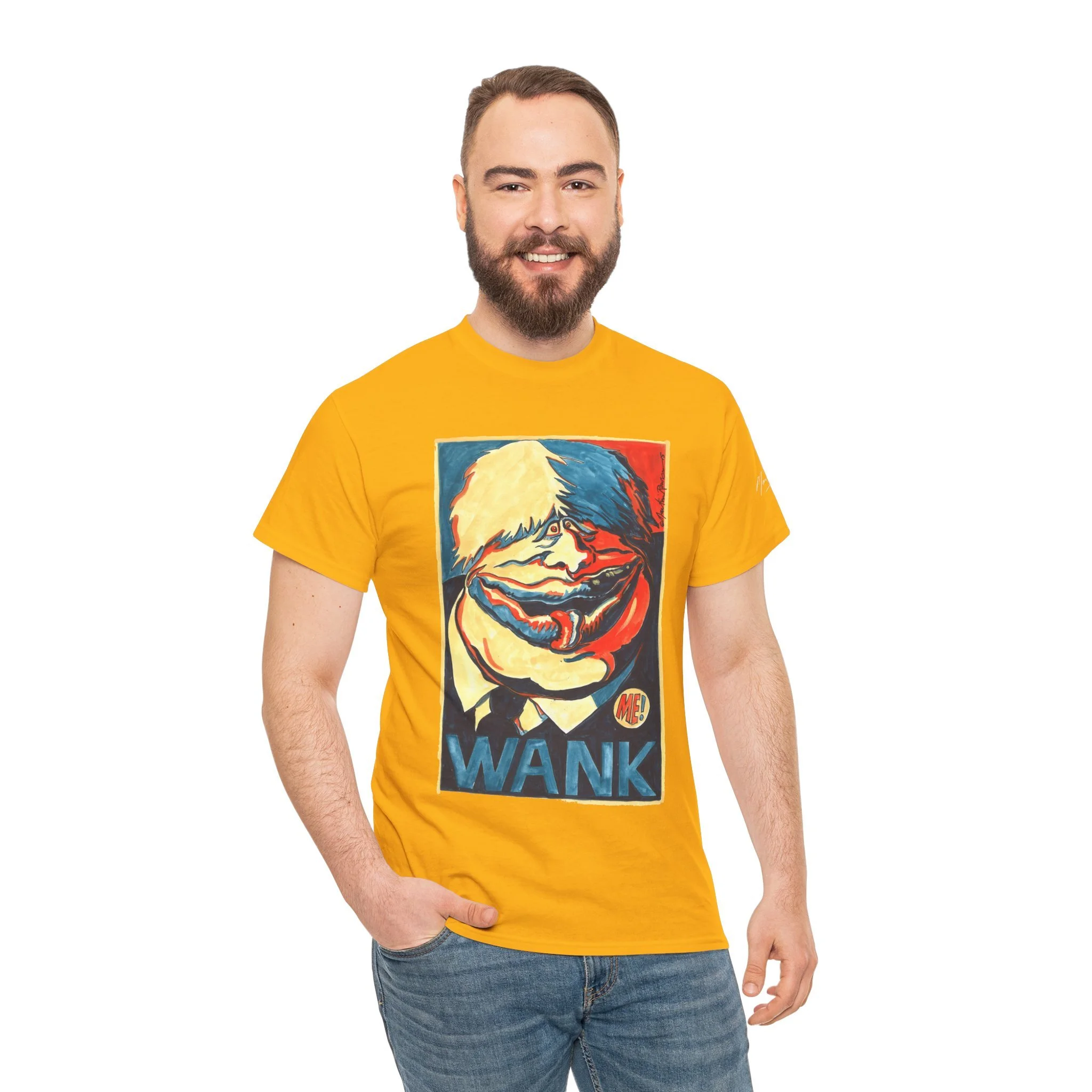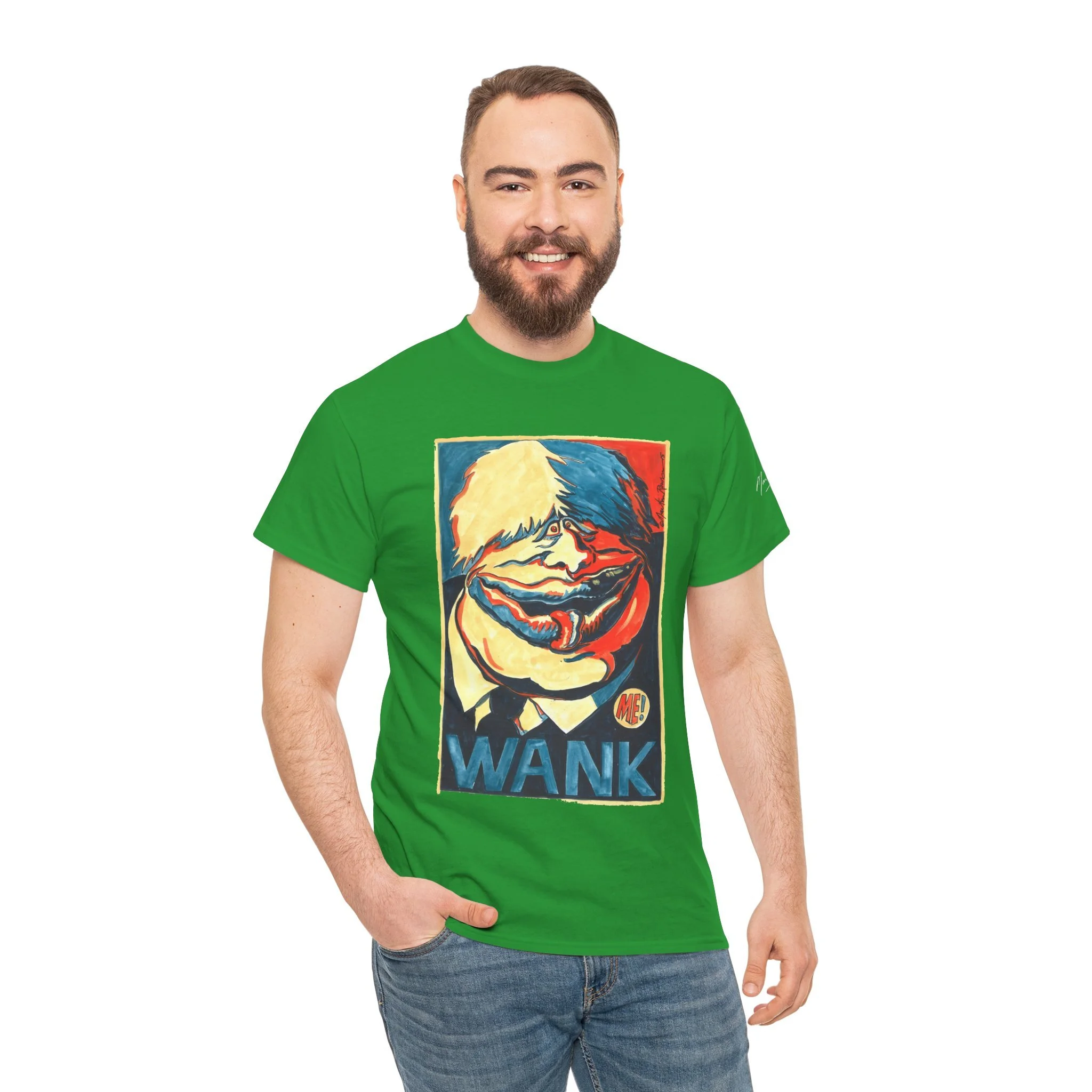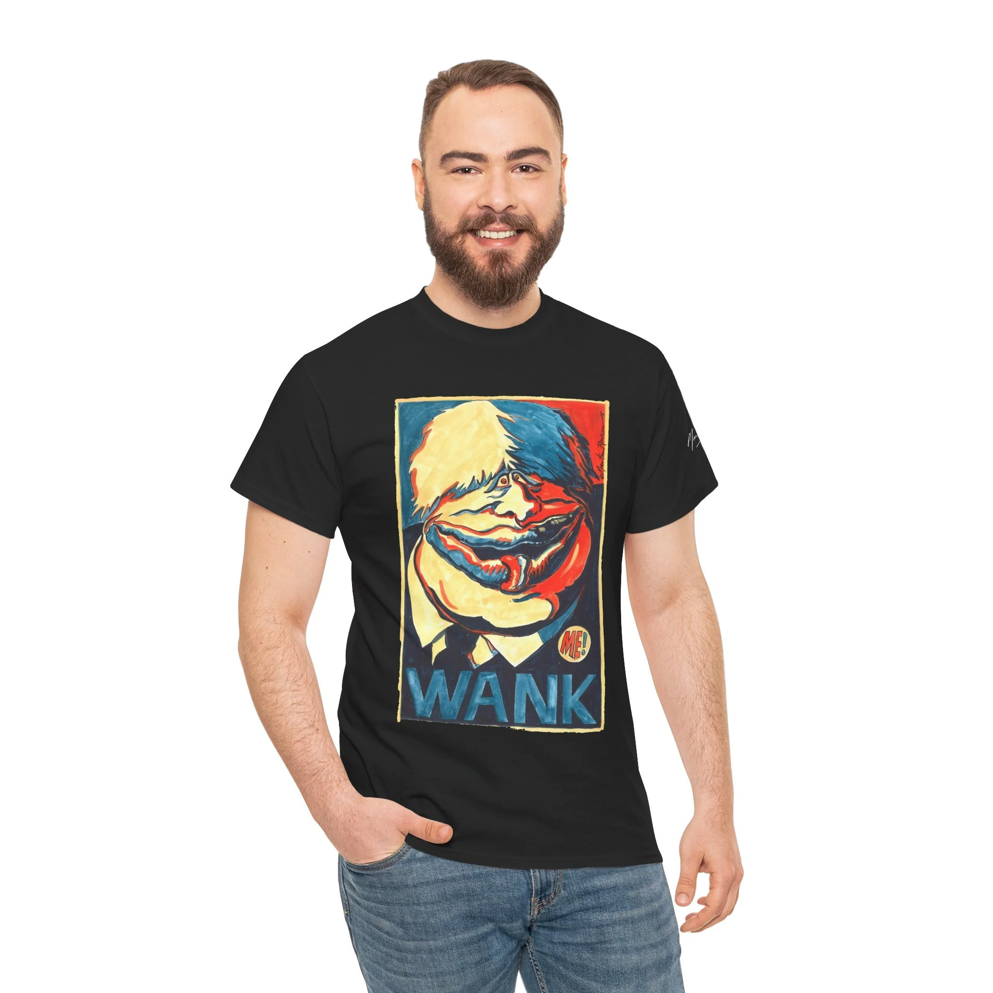 Spaffing him onto a T-shirt, here comes BoJo in a riot of pleasing colours, sizes. Perfect for Sunday Best, for jogging past the Palace of Westminster, or for attenting whichever protest has been banned this week.